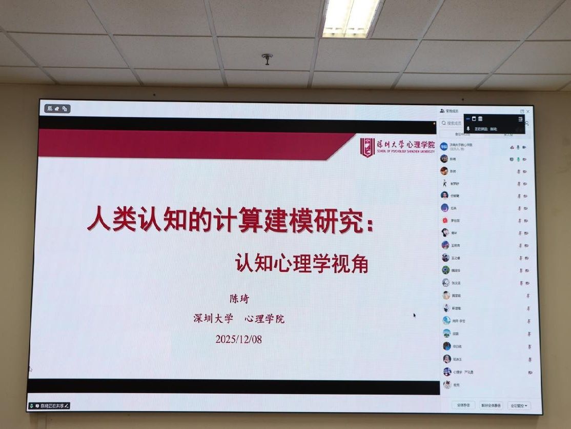 开幕式后,学术报告环节有序展开。深圳大学心理学院陈琦教授率先带来主题为《人类认知的计算建模研究:认知心理学的视角》的报告,从认知心理学维度切入,系统阐释了心理认知过程计算模型的构建逻辑与验证路径,为在场师生打开了认知研究的全新视角;西南大学教育学部李欢教授则聚焦《研究生学术写作与发表的经验交流》,结合自身科研与指导经验,从论文选题、撰写规范到期刊投稿等环节,为研究生学术成果产出提供了实用指引;华东师范大学教育学部王勇丽副教授分享《孤独症儿童情感韵律特征研究进展》,梳理了该领域的前沿成果与实践应用方向,为特殊儿童康复研究提供了重要参考。