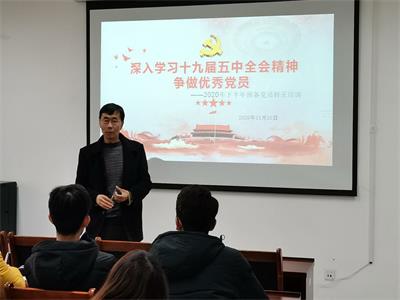 为深入学习贯彻党的十九届五中全会精神,坚定党员理想信念,提升党员政治理论水平,11月30日,365英国上市公司在线在特教大楼开展学习贯彻党的十九届五中全会精神主题党课,本次党课以“深入学习党的十九届五中全会精神,争做优秀党员”为主题,由学院党委书记牛瑞斌主讲,全体党员、预备党员和发展对象参加。