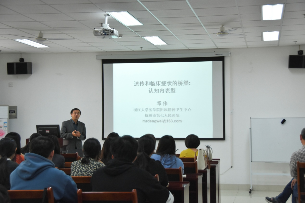 10月13日下午,浙江大学医学院附属精神卫生中心主任医师邓伟教授来我校365英国上市公司在线交流指导,在特教大楼A302会议室接受研究生指导教师聘请并作学术报告。研究生院副院长仲倩及部分心理专业教师及研究生参加了此次活动。报告会由教心学院副院长陈功香主持。