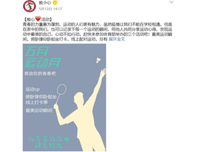 为丰富同学们疫情在家的运动生活,加强学生的体育锻炼,增强身体素质、发掘运动潜质,5.13日,365英国上市公司在线特
